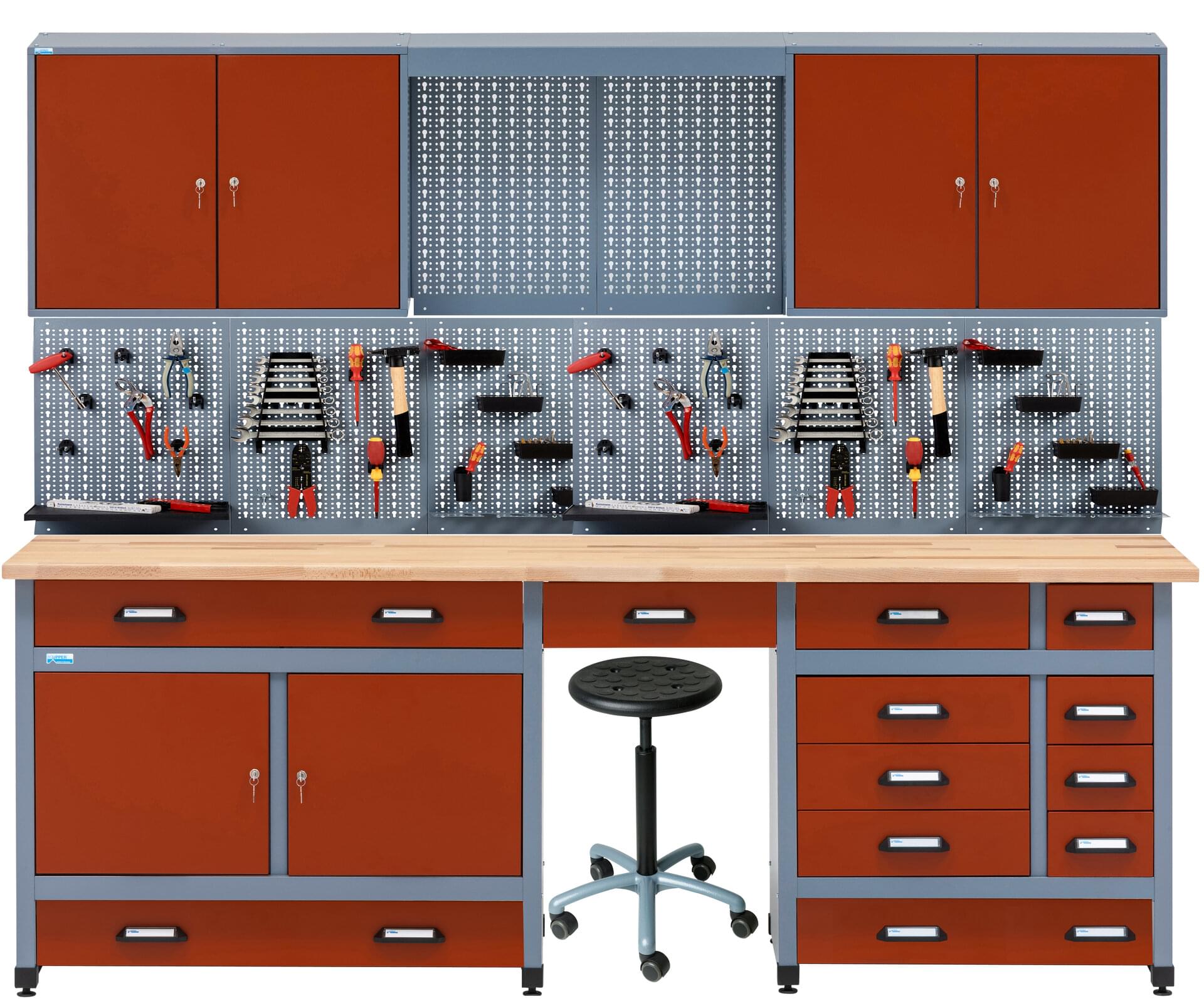 Darüber hinaus bieten insbesondere die Spar-Sets attraktive Sparmöglichkeiten bei gleichzeitig höchster Qualität und Verarbeitung. Auch mit den Lochwänden und Schlitzpanelen sowie passendem Lochwandzubehör aus dem Hause Küpper sind Sie dank perfekter Materialauswahl immer auf der sicheren Seite. Profitieren Sie zudem durch die praktische Flexibilität des Küpper Modulsystems und bauen Sie sich Ihre passende Werkbank oder einen Unterschrank nach Ihren Wünschen!