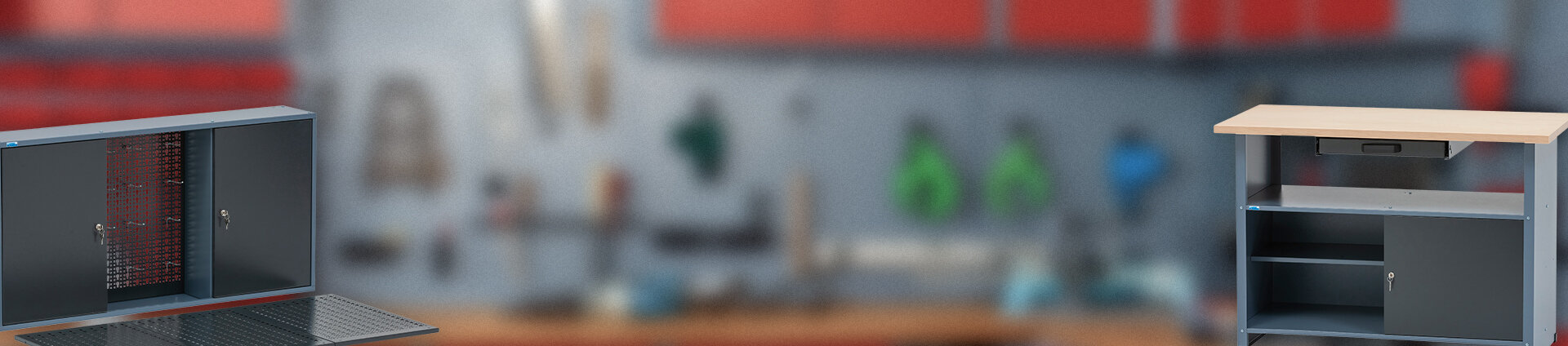 A well-equipped workshop is the dream of every do-it-yourselfer. Perhaps you will find yourself fantasizing now and then of having your own workshop where you can pursue your creative urge. Do not hesitate any longer and make your dream a reality! The promotional workshop in our online shop is the perfect introduction to anyone who has been thinking about setting up their own workshop professionally for a long time. Here you can buy workshop equipment for beginners at favorable conditions without having to compromise on quality. A workbench is part of the basic equipment for ambitious craftsmen and DIY enthusiasts - it is the heart of a workshop and serves as your workplace. In addition, a storage system such as wall cabinets or shelves is recommended to stow away all materials and machines so that they can be found quickly. You can get started right away and throw yourself into your first projects! Our workshop equipment for beginners also includes a workbench base and a solid worktop made of beech veneer - save money and build an inexpensive workbench yourself!