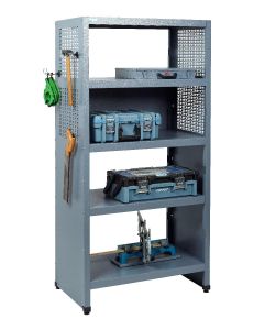 The shelves can be screwed in different positions, the side keyholes allow the use of all Küpper system holders. The shelves are the ideal addition to the Küpper workshop series. This means that the look and color match the workbenches and tall cabinets. The shelves can be brought to exactly the same height as the workbench base plates and offer a load capacity of up to 75 kg (distributed load).